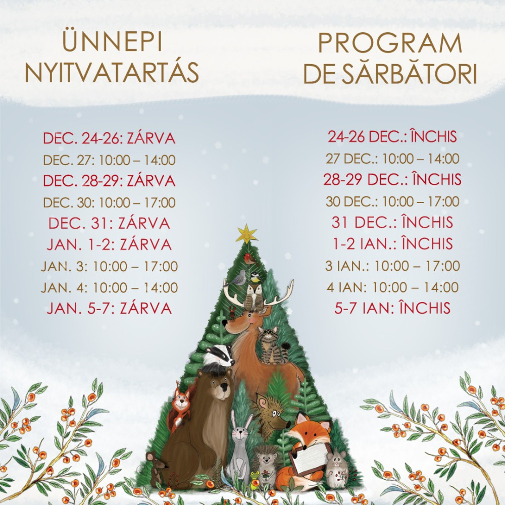 Vă informăm că Colecția Publică Cinegetică va funcționa în perioada sărbătorilor după următorul program: