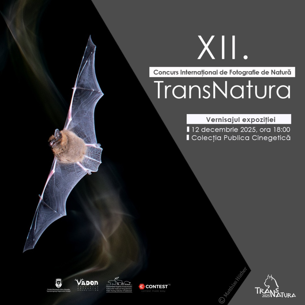 Asociația Vadon are onoarea de a vă invita la vernisajul expoziției Concursului Internațional de Fotografie de Natură TransNatura, ediția a XII-a, care va avea loc în data de 12 decembrie 2025, ora 18:00, în cadrul Colecției Publice Cinegetice.